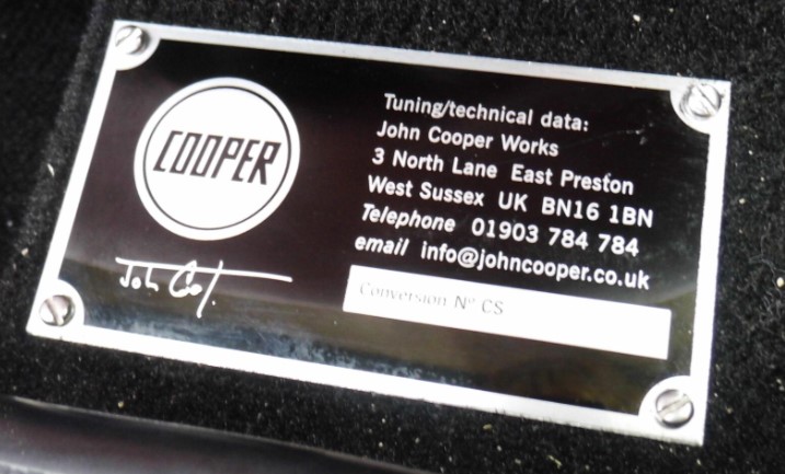 John Cooper S Works Page By popular demand from S Works owners, we have now started a register for these very sort after cars, which have a confusing, and in some cases random and varied numbering scheme. Cars were sometimes bought directly by John Cooper Garages from Rover and converted from new (normally indentified by "Car No. S-WKS-xxx" on the plaque) and then sold by John Cooper Garages, others were subsequently converted later on in life by either John Cooper Garages, or sometimes as a DIY kit, normally identifed by "Conversion No. xxxx" on the plaque where xxx is the unique car number. Some cars are fitted with 'older' plaques with Car No. Sxxx which seem a little random in nature, but that is pretty much how things were with numbers often being chosen by buyers thus not in sequence of build. Depending on the date of the conversion and whether it was a new car or a later conversion, the plaques fitted to the cars by the drivers seat varied in design and numbering scheme used. Each car should have a unique number, and authenticity can be difficult to prove unless all the associated conversion documents and certificates are with the car. The Works cars were upgraded to produce up to 90 bhp, a large increase from the standard 62 bhp with the MPi engine, and many other special cosmetic upgrades were available as options to go with these conversions. There were up to 250 Works cars produced 'from new', although it is believe the final number was less than this, more around the 230 - 235 mark. In addition to those sold new with the S Works conversions, dozens more were converted later in life, numbers unknown, but probably another 100 or so minis treated to this upgrade, some were already earlier 'S' conversions (85bhp) and came back for the extras to push it to the S Works 90 bhp. Part of this number of conversions were the much publicised 'final 50' classic S Works conversions, which came with a signed certificate stating this. There are also stories of additional conversions after these, but we are still gathering data and in communications with ex-employees of the John Cooper Garages to try and confirm the facts on these topics. Data gathered so far confirms some of the final 50 conversions were Cooper Sport 500's - we have five confirmed as such and another two likely to be final 50 cars but without certificates to prove, but we also have non-500's confirmed as being in the final 50 as well, so it appears a mixed bag of cars made up the final 50. If you have a final 50 car, please get in touch with us andy@coopersport500register.co.uk to help solve the puzzle and get the facts recorded once and for all. There were 25 John Cooper LE S Works models, which came with numbered plaques on the dash glove box, but there are also a reported additional 10 cars which are the same but did not have numbers allocated, identical except for not being part of the 25 numbered cars and having no plaque on the glove box lid! These cars account for 35 of the '250' S Works cars made. Again if you have one of these cars, please get in contact with us. It is unfortunate that with all desirable things like this, many fakes have been made, some delibrately so to make sellers a big profit by cashing in on the John Cooper name. The purpose of the register is to help combat this issue by collecting genuine information on the cars allowing us to advise potential purchasers of the likely authenticity of any car. Counterfeit accessories in the John Cooper name are also all too common, ebay being one place to beware of. It is therefore with pleasure to hear that Mike Cooper has re-launched a range of genuine John Cooper accessories again for the mini in 2014. These items can be purchased through Mini Sport, the well known mini spares supplier. If you have an S Works / John Cooper Conversion or wish to buy one, get in touch with us and lets help each other keep the genuine dream alive!