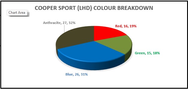 Mini Classic Cooper Sport Page The classic range launched in 2000 for the UK consisted of 3493 cars. Data from MG Rover confirms 2091 of them were the popular Cooper Sport variant. A further 704 cars were made in left hand drive format for outside of the UK, this from a total of 1707 left hand drive 'classic range' cars for the European market. This model is the final evolution of the mini, which had been seen before with the odd special edition with the sports pack flared wheel arches and 13" sports alloys. Unlike earlier cars which were Coopers with an 'optional extra' sports pack upgrade, these Cooper Sports all came as standard with the sports pack (wide arches and 13" alloys) and had a updated interior, which consisted of a stylish nickel-silver and black leather trim, polished alloy door furniture and turned-alloy fascia. The Classic Cooper Sport was available in Solar Red, Anthracite, British Racing Green and Tahiti Blue colours, all with the same black & nickel-silver leather trim. Colour breakdown from data gathered to date for right hand drive cars is as follows (this is just over half of all made, so gives a likely realistic overall percentage) :- For left hand drive the current data set is limited, the chart below showing the breakdown we have so far If you own one of these special cars, please get in contact with us (see the register page) to register the car - our goal is to track down all the Classic range cars to conclude how many still survive today, and to unite owners of these cars together at displays and mini shows around the country. |